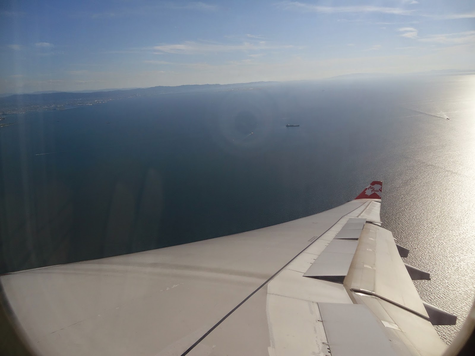 Gambar - gambar ni diambil semasa kapal terbang sudah hampir menadarat. Untuk info, kapal terbang Air Asia mendarat di Kansai International Airport atau singkatannya KIX. KIX ni agak unik sebab seluruh kawasan lapangan terbang adalah di pulau buatan yang ditambak. Agak cuak lah juga tengak kapal terbang landing sebab keliling landasan adalah air laut. Namun, ia tetap satu pengalaman yang menabjubkan.