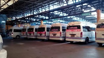 Ada beberapa kenderaan yang kita kena guna kalau nak ke sana dari hostel ni. Firstly, naik MRT dari Queen Sirikit ke Stesyen Sukhumvit. Tambang sehala THB16. Kat Sukhumvit ni kena tukar plak ke line BTS. Naik dr stesyen Asoke dan turun di stesyen Victory Monument. Tambangya THB37. Dari Victory Monument pula ambil minivan kat stesyen minivan sebelah bangunan Suzuki dealer. Tambang minivan pula THB700 per person. Minivan ni tunggu orang penuh baru dia jalan, jadi xde specific time untuk satu - satu perjalanan.